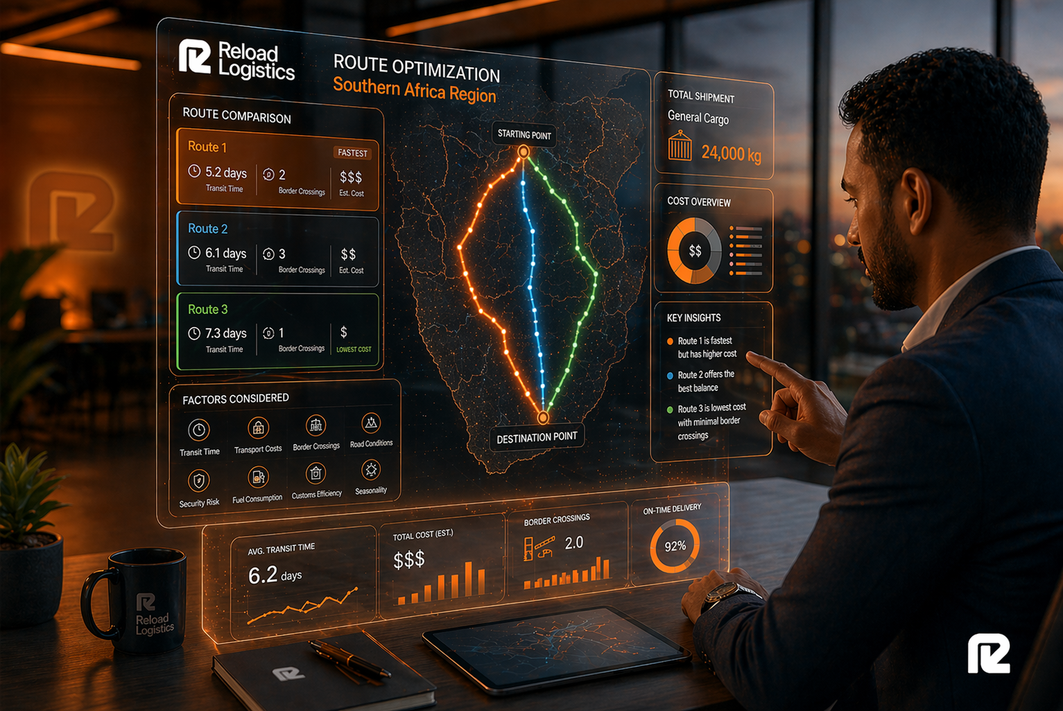Reload Logistics has the most efficient multi-modal operating model in the market. This gives clients optimal routing, extensive capacity, and perfect cargo traceability throughout the logistics process.